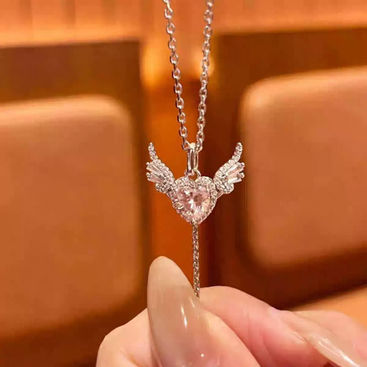 Angel Necklace for Women, Heart Pendant Necklace with Movable Wings, Fashion Versatile Elegant Jewelry, Party Daily Birthday Gift