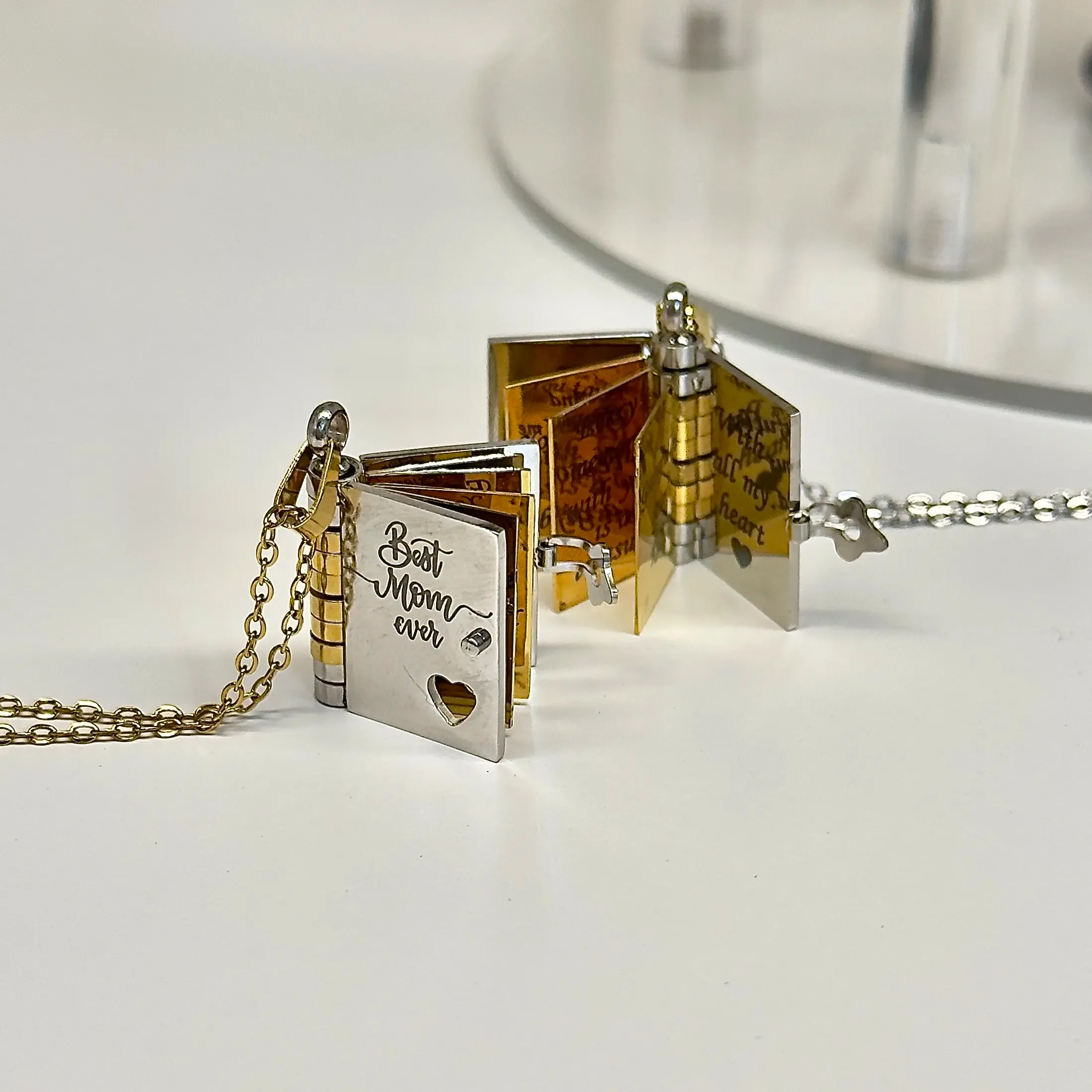 Best Mom Ever Book Necklace—perfect for Mother's Day gifting. This unique necklace features a book-shaped pendant with a flip-page design, exquisitely crafted from rust-proof 316 titanium steel.2173 sales