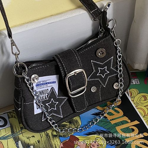 Women's Fashionable Star Patched Shoulder Bag, Vintage Y2K Style Chain Decor Underarm Bag for Daily Used, Casual Trendy Versatile High-quality Daily Commuting Bag, Crossbody Chain Bag