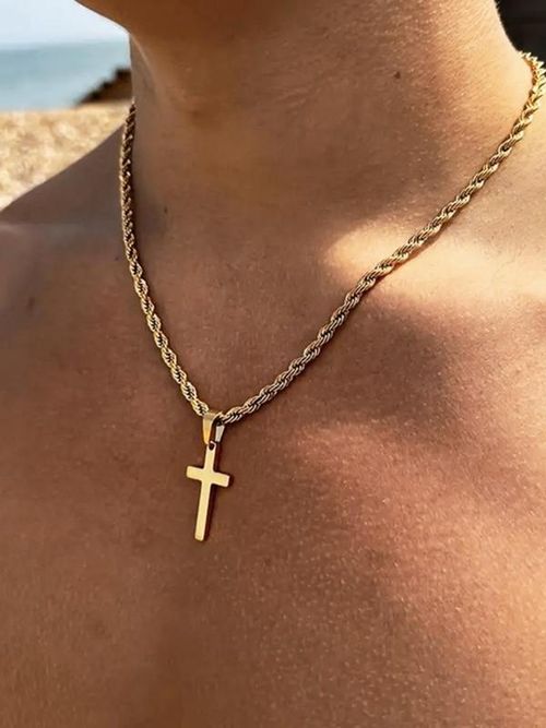 Men's Stainless Steel Cross Pendant Necklace, Fashion Jewelry for Party, Daily Clothing Decor, Trendy All-match & Exquisite Jewelry for Birthday Gift, Exquisite Chain Jewelry