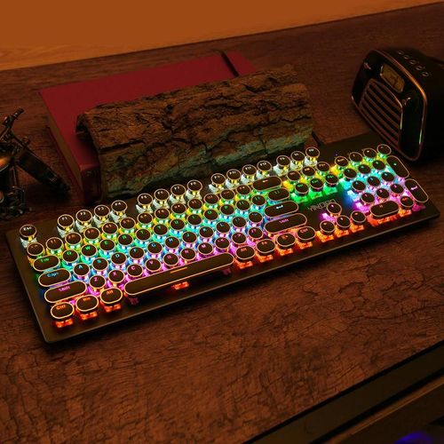 Wired Mechanical Keyboard, Punk Style Round Keyboard with Colorful Light, Ergonomic Keyboard for Gaming, Gaming Accessories, Computer Keyboard Caps, Keyboard Round Caps, Backlit Keyboard