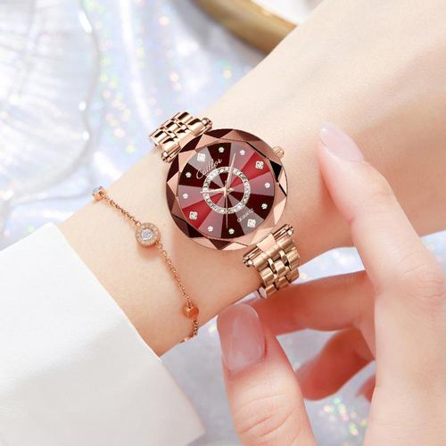 Womens Elegant Round Analog Quartz Watch - Diamond Cut Glass, Waterproof, Stylish & Versatile Exquisite Accessory, Ideal for Daily Wear & Party Outfits